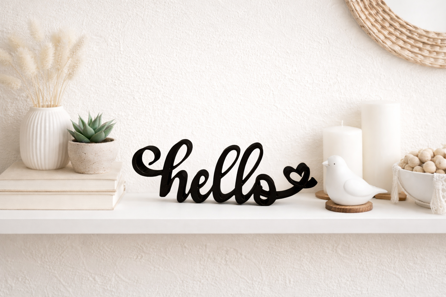 Dieser Schriftzug ist etwas ganz besonderes – mit dieser liebevoll gestalteten 3D-Druckdatei machst du dein zuhause noch ein Stückchen schöner. Egal ob als Tischdeko oder Dekoelement auf einem Regal oder im Fenster.