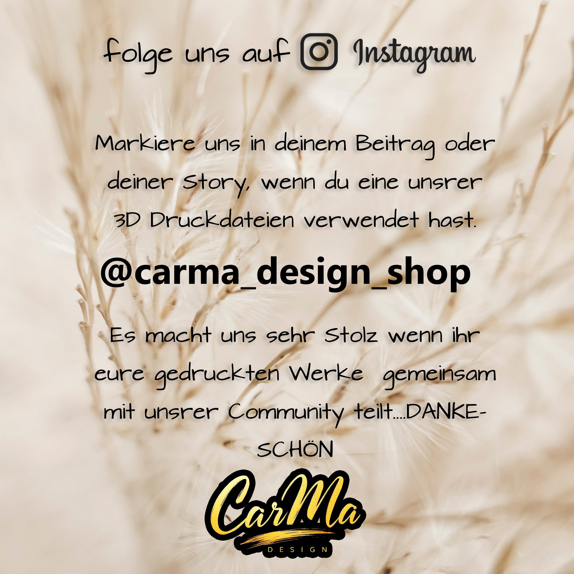 - Bei Social Media-Posts bitte **carma_design_shop** als Designer verwenden
