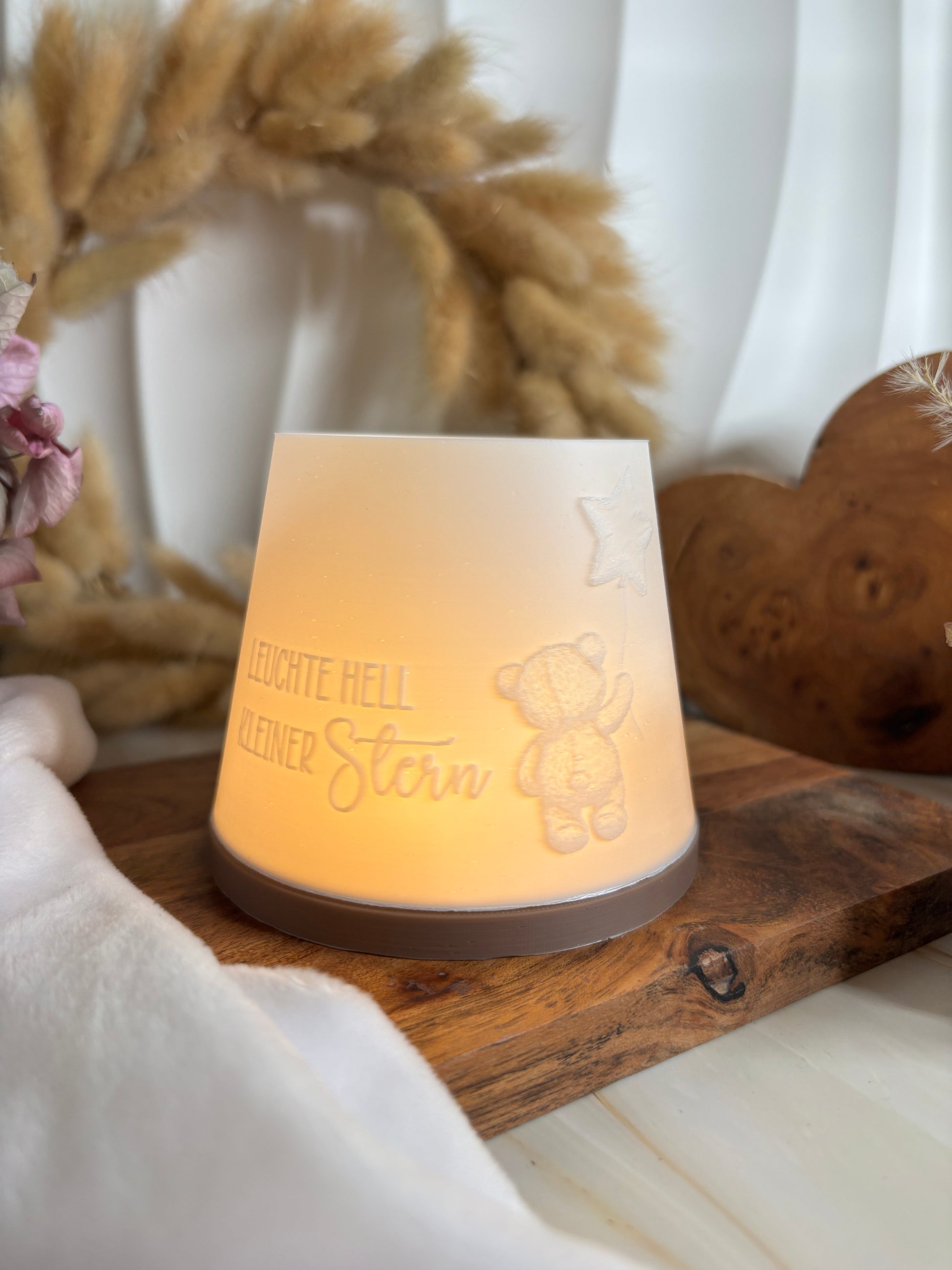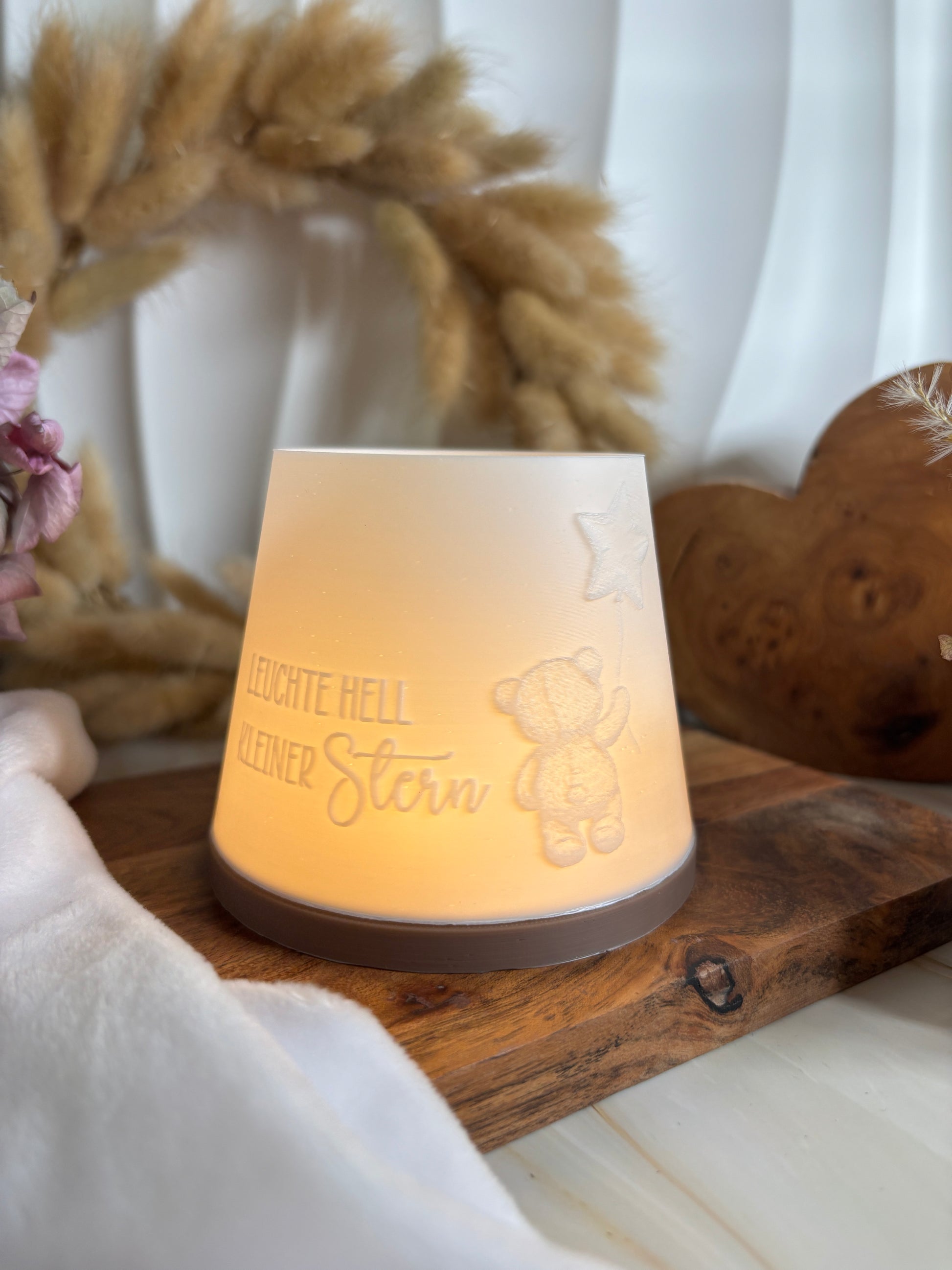 Dieses liebevoll gestaltete Windlicht ist ein zarter Begleiter für all jene, die ein Sternenkind im Herzen tragen. Sein sanfter Schein schenkt Trost, Wärme und das Gefühl von Nähe – als würde ein kleines Licht aus der Ferne sagen: „Ich bin da, ich bin nicht vergessen.“
