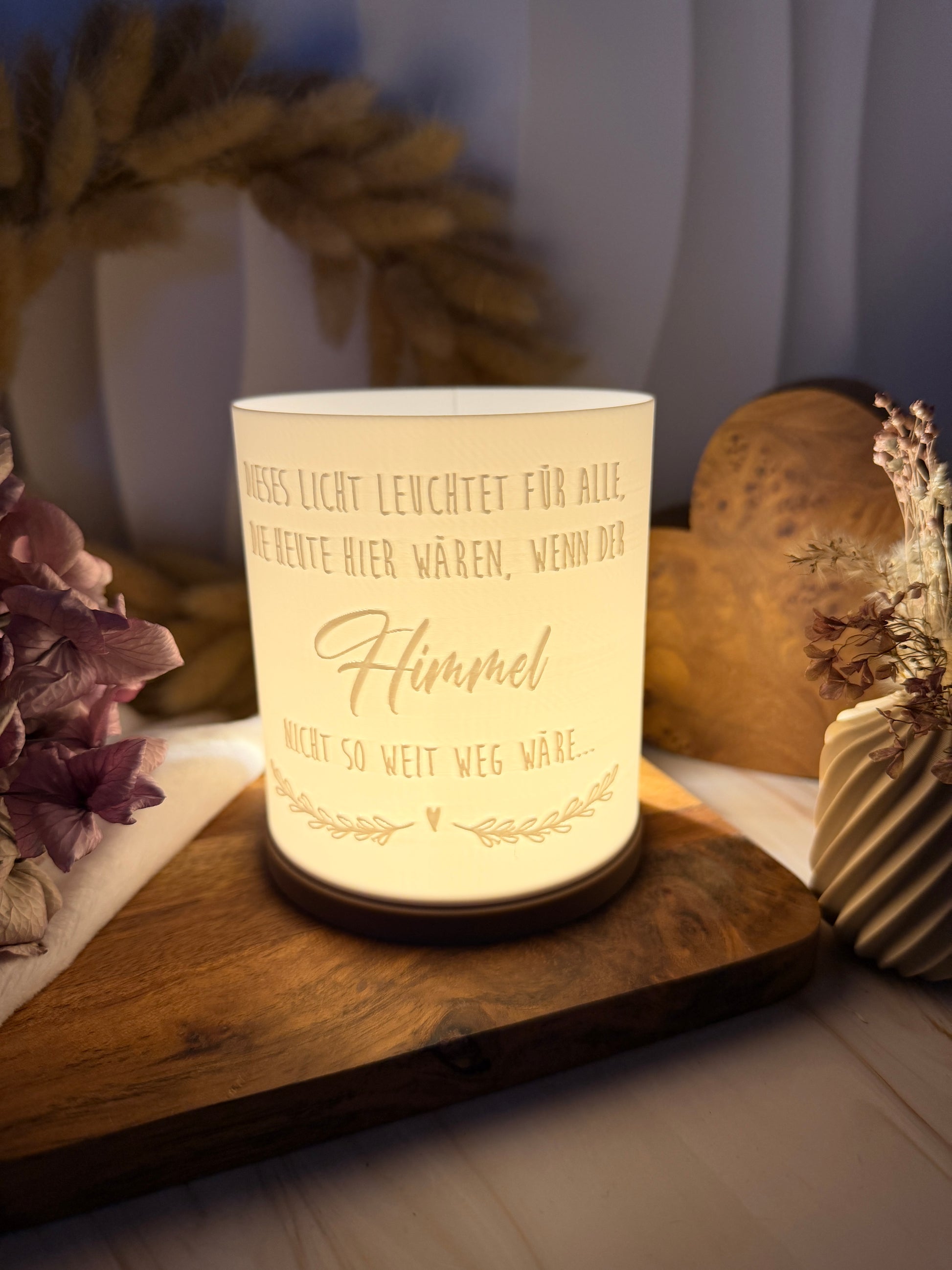 Dieses liebevoll designte 3D-Druck-Set aus Windlicht und Sockel enthält alles, was Du für die einfache Herstellung eines bezaubernden Windlichts mit wundervollm Motiv benötigst.