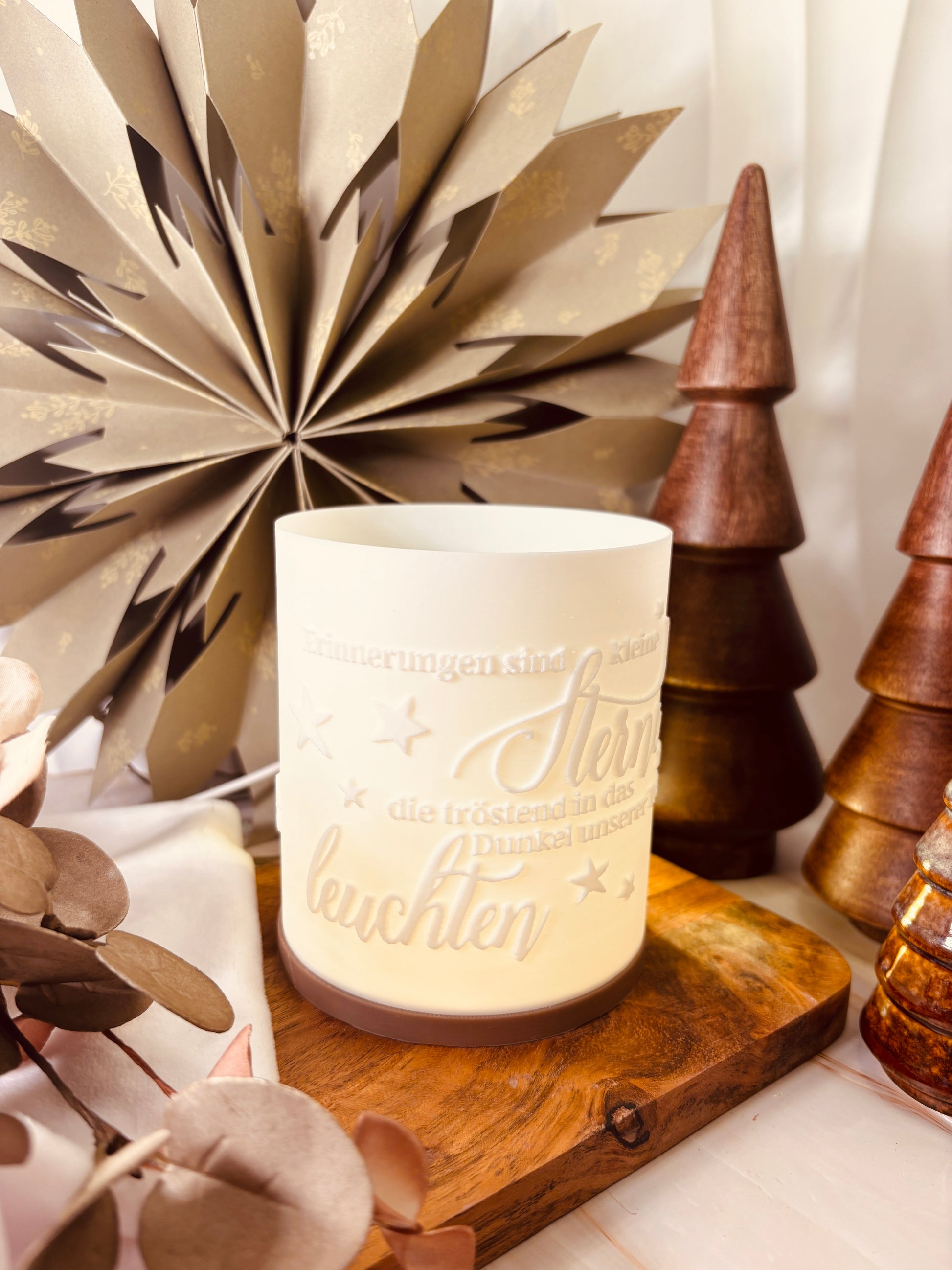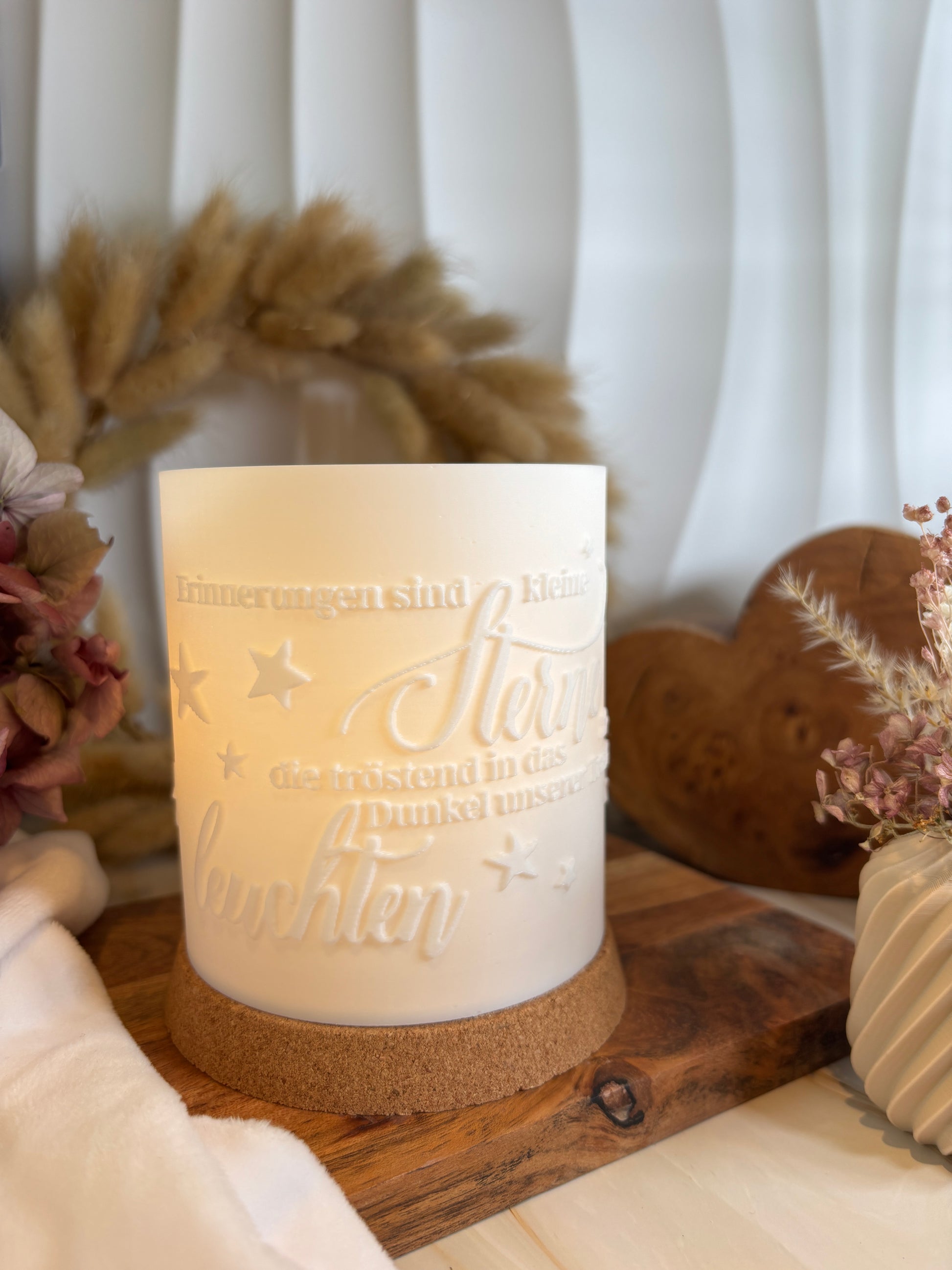 Dieses liebevoll designte 3D-Druck-Set aus Windlicht und Sockel enthält alles, was Du für die einfache Herstellung eines bezaubernden Windlichts mit wundervollm Motiv benötigst.