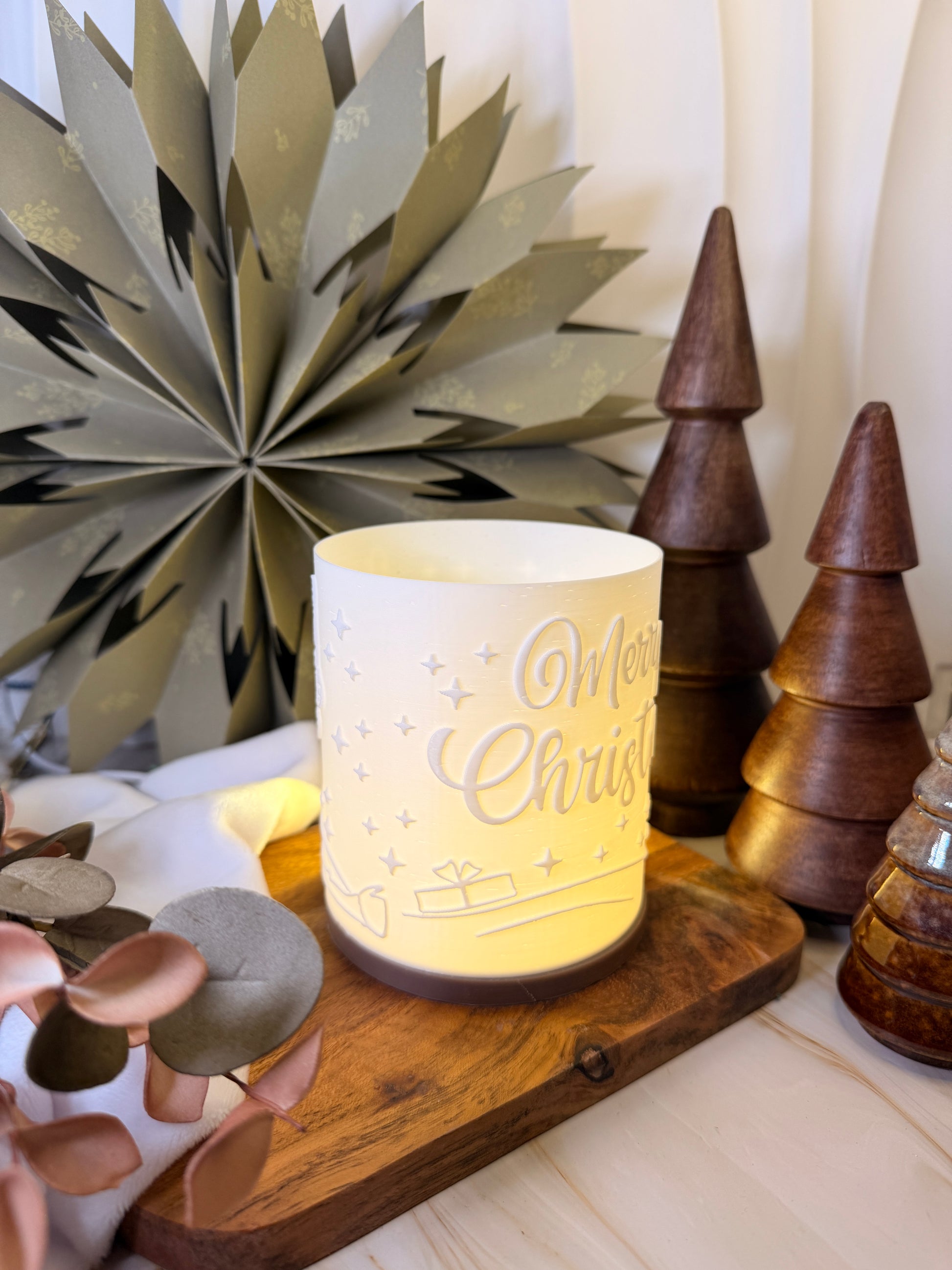 Dieses liebevoll designte 3D-Druck-Set aus Windlicht und Sockel enthält alles, was Du für die einfache Herstellung eines bezaubernden Windlichts mit wundervollm Motiv benötigst.